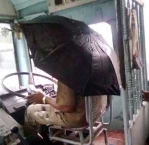 Οδηγούμε και εμείς παράτυπα με ομπρέλα, αλλά όχι και οδηγώντας το λεωφορείο, όπως στις Ινδίες !