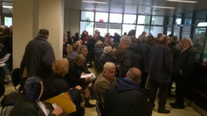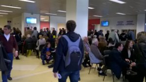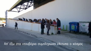 Χαμός λοιπόν εκεί όπου έτρεχαν οι Αθηναίοι για να δηλώσουν το κτηματολόγιό τους, με μέσο χρόνο αναμονής 6 ώρες (!!) και απίστευτο στριμωξίδι (Φώτο). Περιμένοντας επί ώρες και βολτάροντας απέξω, βλέπω έναν ερχόμενο κύριο να ρωτάει κάποιους που έφευγαν. “Πού είναι το κτηματολόγιο;” και αυτοί του λένε : “εκεί, αλλά μην πας θα ξαναφύγεις σκασμένος” !